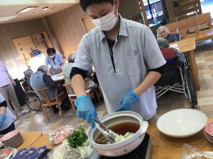 昼食には美味しそうな具だくさんの鍋と、彩り豊かなオードブルもご用意し、いつもより少し特別な食事の時間となりました🫢