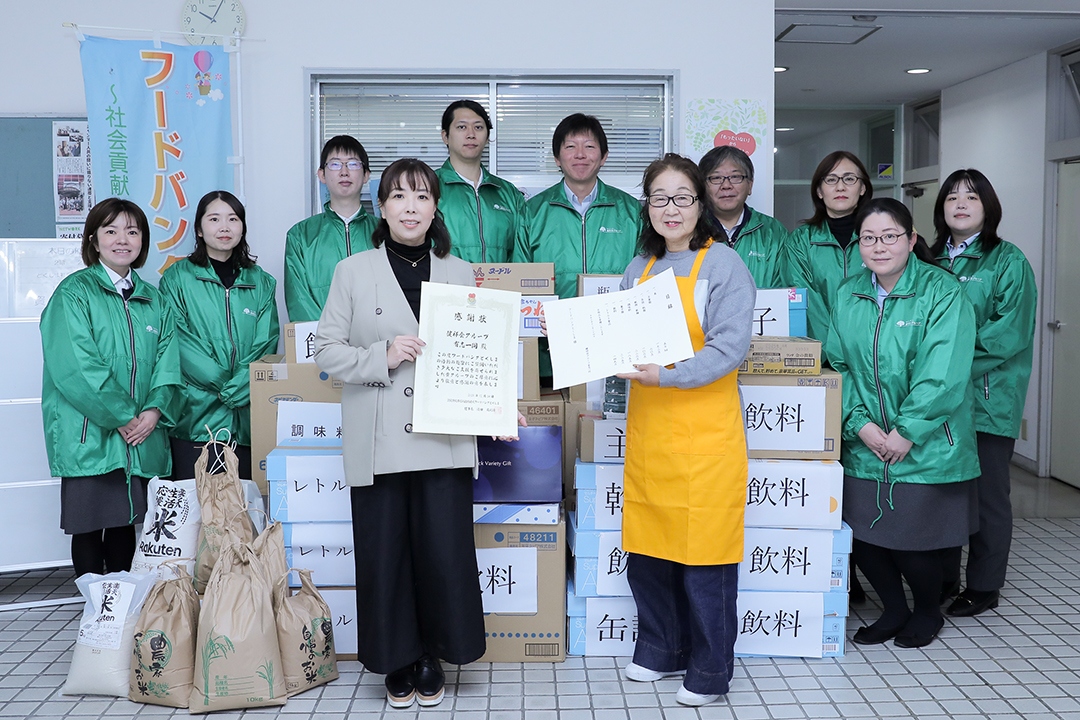 家庭や職場で余った食品をフードバンクへ届けるフードドライブ活動を、KIRARI WOMAN ネットワークが今年も実施。物価高が続く中、日々の暮らしを考慮し、無理のない範囲での協力をグループ内に呼びかけました。京都、大阪、香川、高知の施設を含む34施設の職員、さらに役員の協力も得て、11/19〜12/17までの間に本部に持ち寄られた食品は、台所の余剰品から届いたばかりのお歳暮まで、お米57kgと麺類、缶詰、乾物、インスタント食品・レトルト食品、調味料、飲料、お菓子など1,224点。クリスマスイブに常務理事中村晃子がフードバンクとくしま清田麻利子理事長へ目録とともにお渡ししてきました。すっかり年末の恒例行事となった感のKIRARIフードドライブ。困難を抱える皆様の年末年始が少しでもあたたかなものになりますように。