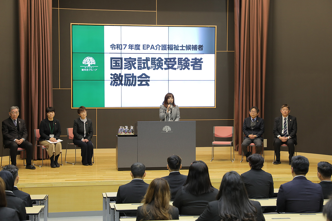 「介護福祉士」という資格は、皆さんがプロとして生きていくための「宝物」であり、未来を切り拓き、愛する家族を支えていくための「大きな武器」です。きっと掴み取り、皆さんの輝かしい人生のための新たなスタートとして、さらに高みをめざし、健祥会グループを引っ張るリーダーになってください。