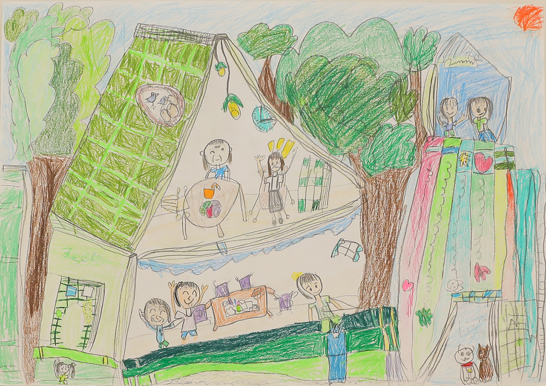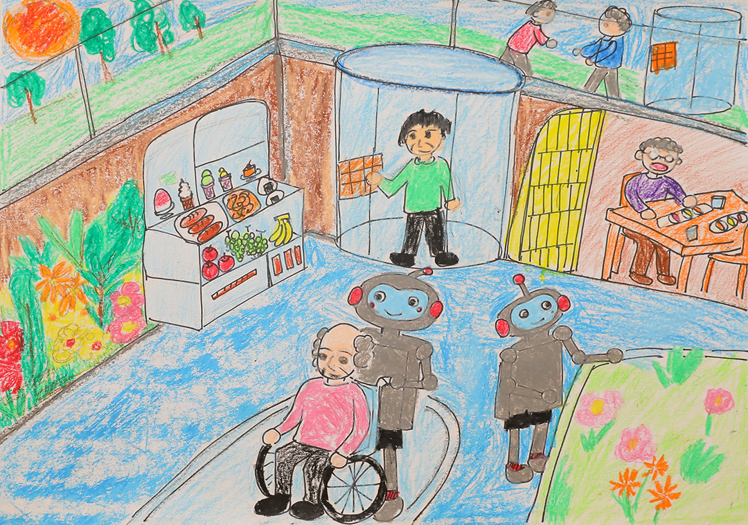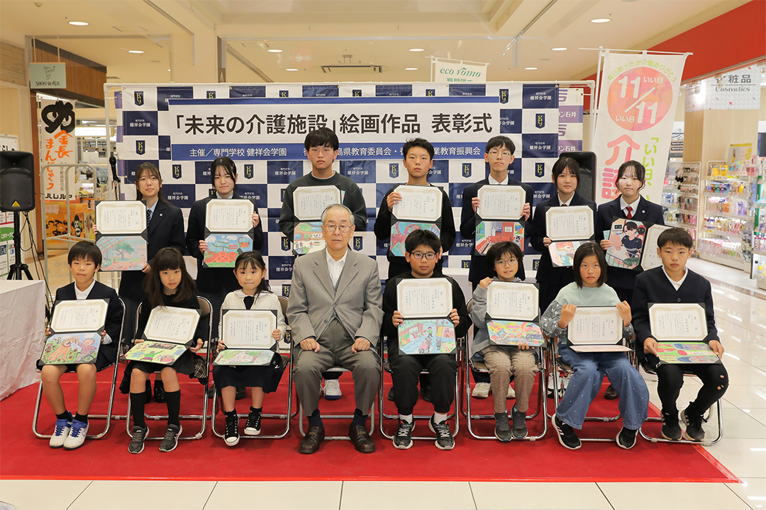 高齢化が急速に進み、「介護」がすべての人にとって身近なテーマとなった今、子どもたちにも「介護」について考えてもらう機会をつくろうと、専門学校健祥会学園から徳島県内の児童生徒に向けて「未来の介護施設」をテーマとした絵画作品を募集しました。