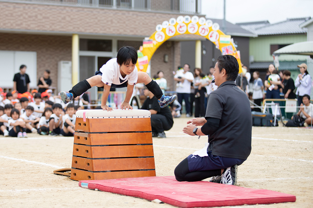 運動会は、子どもたちにとっても保護者の皆様にとっても、最も楽しみな行事のひとつ。さまざまな種目に体操教室で鍛えた精一杯の力で臨み、保護者の皆様を楽しませてくれています。