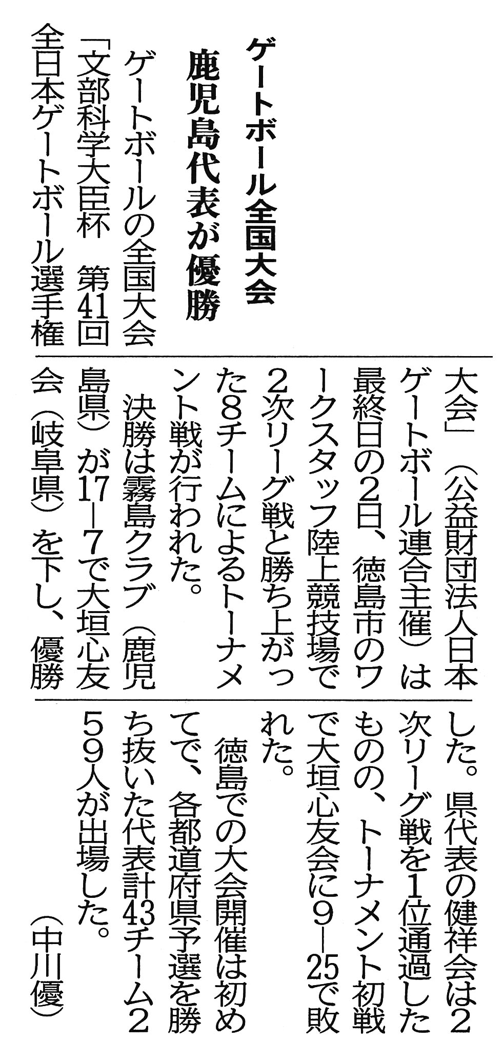 ゲートボール全国大会 鹿児島代表が優勝 | 徳島新聞