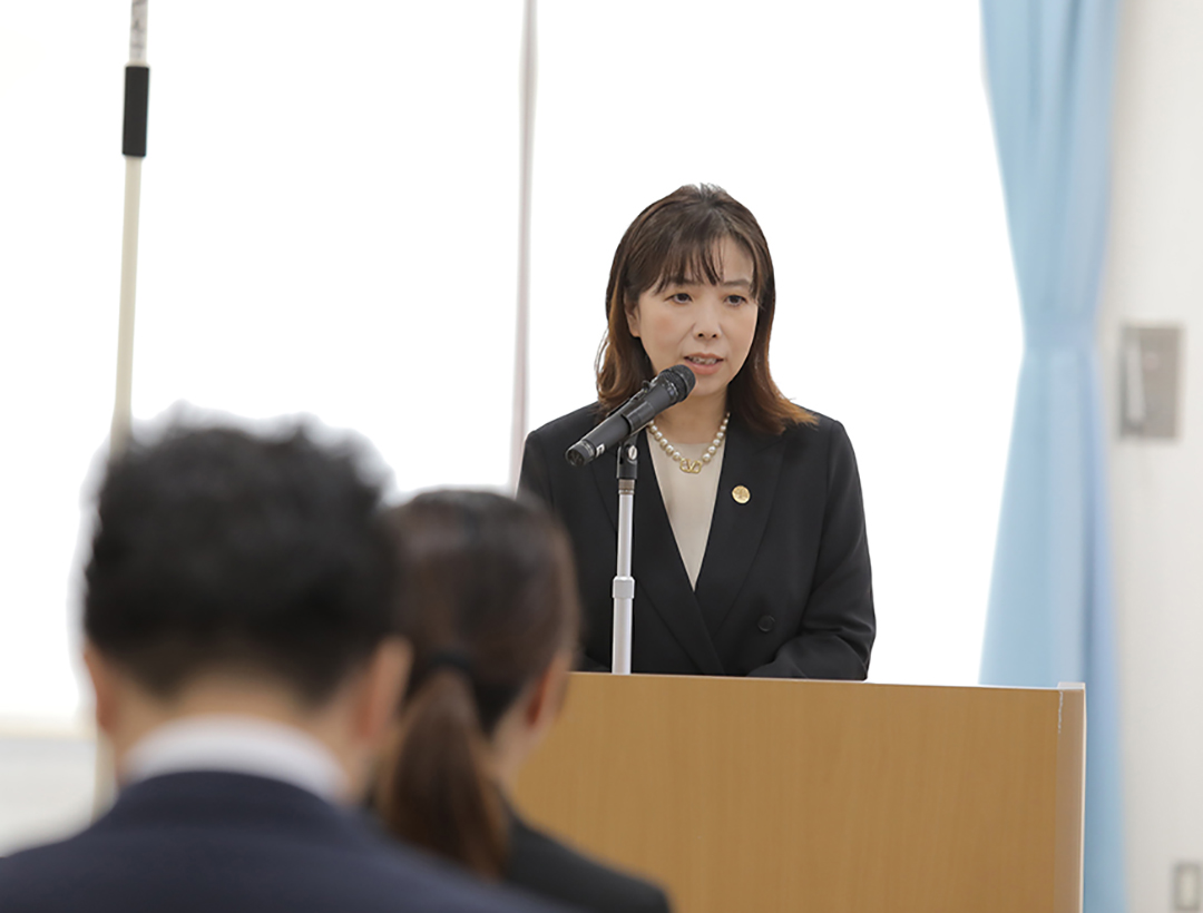 常務理事の言葉を受け、内定者の代表が「介護・医療・教育保育という、社会を支える重要な役割を担うことの責任の重さを胸に、目の前の利用者様の気持ちや願いを受け止め、思いやりと行動力にあふれる福祉人に成長できるよう、誠心誠意、職務に取り組んでまいります」と宣誓しました。