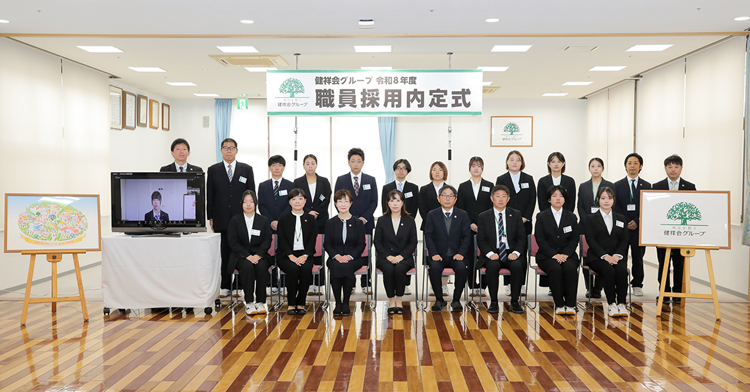 11月11日は、「いい日、いい日、毎日、あったか介護ありがとう」の介護の日。健祥会グループでは、この言葉に込められた想いを胸に刻んで人生をスタートしてほしく、毎年この日を内定式の日としています。