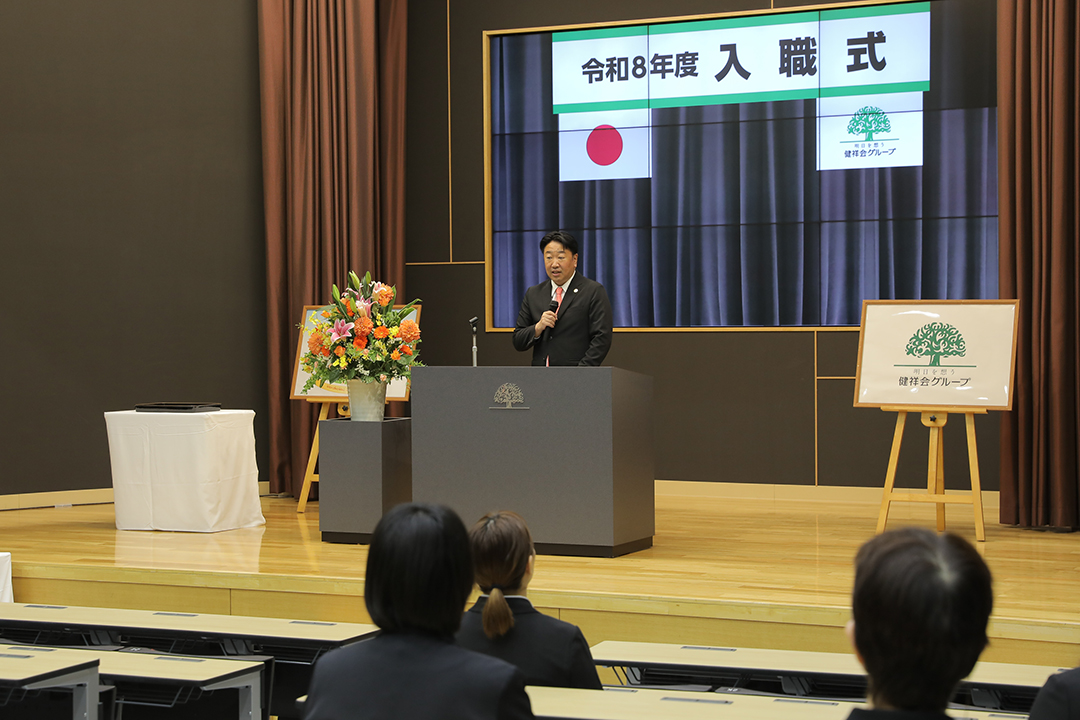 令和8年度が始まりました。新しいことが動き出す日、健祥会グループに14名の新入職員を迎え、入職式が行われました。